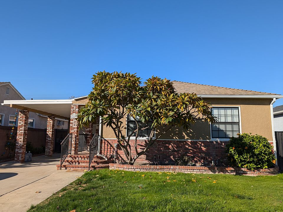 This 3 bed 2 bath home with EV fast charging is located on a quiet interior street. Three driveway spaces including a q car garage and covered carport. The driveway has a plug for EV fast charging. It features three bedrooms, two full bathrooms, and a separate dining area. The step down living room is quite spacious and features a wood burning fireplace. The master bedroom is on the larger side for a Lakewood home. The sizeable kitchen is recently remodeled with new cabinetry, quartz countertops, and Bosch dishwasher. There is ample counter and cabinet space for those who love to cook. There is central air and heat. The backyard includes a covered patio, one large, and one small free standing shed for extra storage. Gardner is included. Single family residence, NO ADU.