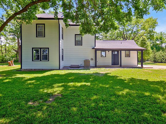 Fully Remodeled Farmhouse on 9.5 Acres – Horses Allowed! Spectacular two-story farmhouse situated on a beautiful 9.5-acre lot. This fully remodeled home features new paint inside and out! Step into the brand-new kitchen with granite countertops, new cabinetry, tile backsplash, luxury vinyl flooring, stainless steel farmhouse sink, and all new appliances. Spacious utility room with adjacent mudroom on the main floor. The open living and dining area includes French doors that overlook a private, tree-lined front yard. Two bedrooms with new paint and carpet and a fully renovated bathroom complete the main level. Upstairs offers three additional updated bedrooms and full bath with walk-in shower. The property has a shaded backyard perfect for spending time in the summer months and is lined with mature trees for added privacy. Also included is a 16’ x 10’ metal outbuilding and fencing on the north side—perfect for horses or other livestock. Don't miss out on this rare opportunity to enjoy peaceful country living with modern amenities!