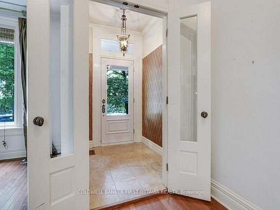 Fall in love with this elegant & spacious 3-Story 3-bedroom, 3-bath end-unit rowhouse in the heart of Sandy Hill where timeless charm meets effortless downtown living.Nestled on a picturesque tree-lined street, this beautifully maintained home greets you with soaring ceilings, gleaming hardwood floors, and vintage French doors that whisper stories of another era. Every detail from the warm glow of the wood-burning fireplace to the statement lighting and inviting bathrooms blends classic character with modern comfort.The sun-filled, updated kitchen opens to a private deck, perfect for morning coffee or evening gatherings, while the formal dining room sets the stage for memorable moments. Upstairs, a cozy family room with exposed brick and built-in bookshelves offers space to unwind or work in style.The serene primary suite features a walk-in closet and a spa-inspired ensuite with separate tub, shower, and vanity spaces a true retreat in the city. On the top floor, two generous bedrooms, including one ideal as a bright office or creative studio with its own deck, complete this rare find. Just steps from the Rideau River pathways, ByWard Market, uOttawa, Parliament Hill, and Strathcona Park, this home is more than a place to live its a piece of Sandy Hills story, filled with warmth, history, and undeniable charm.Association fee covers snow removal in laneway (Lane WayRight of Way Agreement). Parking at rear plus on-street. 24-hour irrevocable on offers (Form 244). Washer/dryer currently in basement but can be moved to primary suite. Some images virtually staged; unstaged photos show actual condition.
