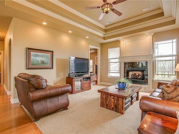 Perfection on 1.5 park-like acres with 3 BR, 2 BA, 2 living areas & formal dining. Seller added a fantastic outdoor living room with fireplace & sunny patio. This home is enhanced by rich hardwood flooring & 2 interior fireplaces. Recently installed granite surfaces, gas range with updraft venting, & blinds. High ceilings & a split floor welcome your guests. Kitchen opens to hearth room & breakfast area. This exclusive neighborhood is just minutes from both the U of A & the Bentonville Square.