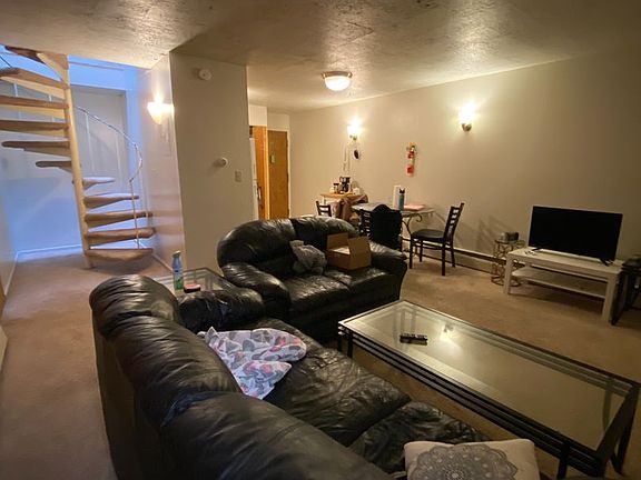 Amazing location across the street from the Math Department! Spiral staircase leads upstairs to two bedrooms with walk in closets. Updated kitchen including dishwasher, balcony, and air conditioning The apartment comes fully furnished, and WASH laundry is available on-site!