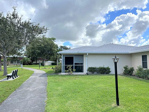 RARELY AVAILABLE VILLA with SPECTACULAR LAKE VIEW. Come renovate this property with your own design ideas and make it yours. The washing machine, dryer and hot water tank have been conveniently moved to one closet in the hallway. A/C is only 2 years old and hot water tank is new. Parking located right out the front door. Spacious eat in kitchen has plenty of cabinets and counter space. Large screened porch overlooking the lake has western view for the gorgeous Florida sunsets. Master bedroom features full wall closet, ensuite bathroom with tiled walk in shower and newer high seated toilet. Master bedroom also overlooks the lake. Imagine waking up to the beautiful water view. The community is very active and pet friendly. Pets up to 22lbs welcome. Pick up truck and motorcycles allowed. Motorcycles must be parked in a special lot. Property is a short walk along the lake to the clubhouse that offers tennis, pickleball, 2 heated pools, clubhouse, library, billiards, ping pong, air hockey, shuffleboard, bocce and more. Less than 10 miles to Lake Worth Beach. BRAND NEW ROOFS JUST INSTALL. Seller will pay assessment.