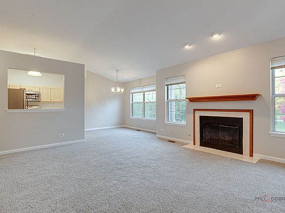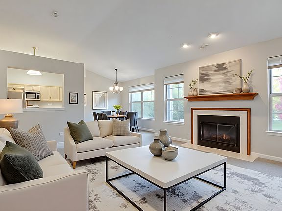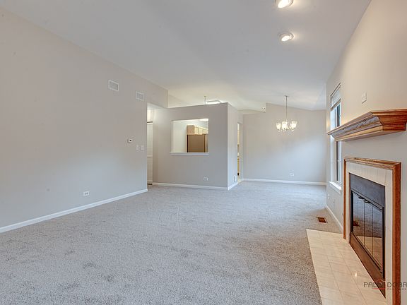 TOP-RATED STEVENSON HIGH SCHOOL DISTRICT! BEAUTIFULLY UPDATED & MOVE-IN READY IN THE CARRIAGES OF GROSSE POINTE! This inviting 2-bedroom, 1.5-bath condo has been refreshed to offer effortless style, comfort, and peace of mind. Freshly painted in a sought-after modern color palette, the home feels bright, welcoming, and on-trend from the moment you arrive. With new siding (2025), a new roof (2024), brand-new carpet, and modern light fixtures throughout, this home shines with contemporary appeal and low-maintenance living. The main living area draws you in with its soaring vaulted ceilings and an abundance of natural light that creates an open, airy atmosphere. The gas fireplace accents the space with a gentle glow, inviting you to settle in and relax; a perfect backdrop for cozy nights at home or effortless gatherings with friends. The kitchen invites you to create and entertain with ease, featuring ample cabinetry for all your essentials, generous counter space that makes meal prep effortless, and a pass-through window to the living room that keeps the conversation flowing. Stainless steel appliances add a sleek, modern touch, making this space both practical and welcoming for everyday cooking and casual gatherings. The spacious main bedroom feels like a private sanctuary, featuring a vaulted ceiling, walk-in closet, and ensuite bath. Private access to the balcony extends the space outdoors-ideal for unwinding with a book or a cup of tea. The second bedroom offers flexibility for guests, a home office, or a creative studio. A convenient laundry closet, a half bath, and a thoughtful layout complete this home. Head outside, and you'll find a brand-new neighborhood park just seconds from your door, perfect for morning walks, playtime, or enjoying the outdoors without leaving your community. Located within a well-managed community and just minutes from the train, shopping, and restaurants, this property combines modern updates, high-style comfort, and an exceptional location in the award-winning Stevenson School District.