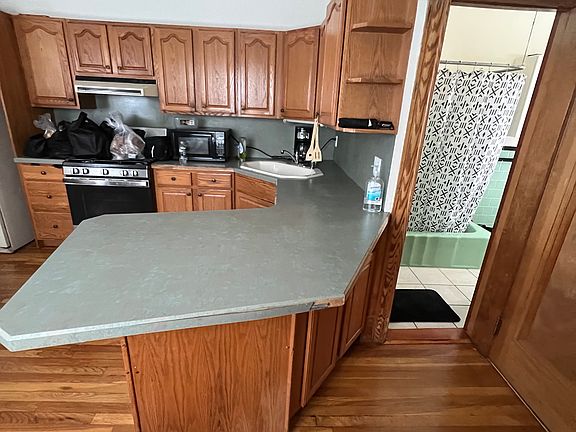 1-bedroom (1-bathroom) second floor apartment with front and back ingress/egress. The apartment offers hardwood floor throughout (bathroom tiles), and plenty of natural lighting as each room has multiple windows. Enjoy the beautiful front lawn or amazing wrap-around porch. There's also back yard and 2 detached garages rented as storage (subject to availability). Near bus routes, close to highways, shopping and dining. Owner pays for sewer, water, hot water, heating and gas (stove). Tenant pays for electricity and any other utilities or services. IMPORTANT: 18+ occupants should be included in application even if not responsible for rent. Only completed applications considered for tour, no exceptions.