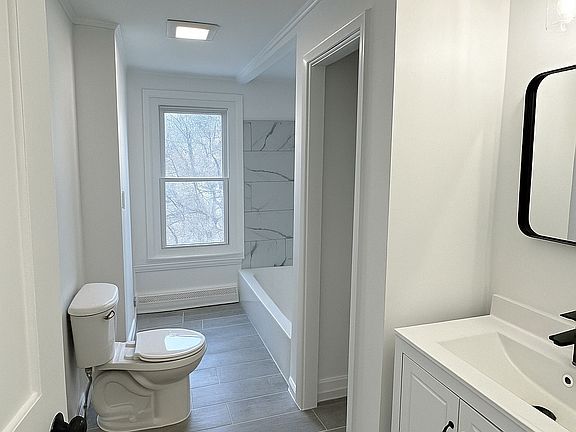 Fully renovated bathroom with updated fixtures and fresh tile work