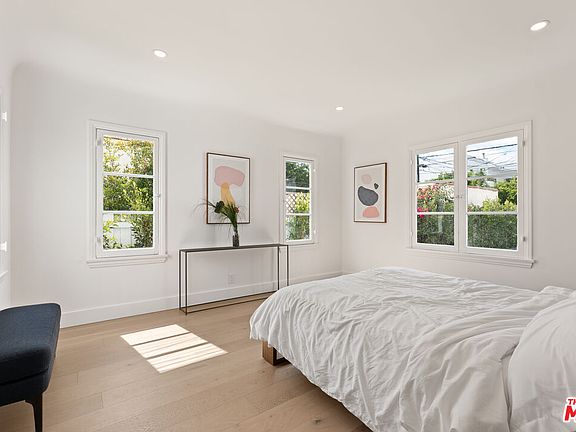 Located on one of Beverly Grove's most desirable and quiet streets, this updated first floor residence of a duplex features 3 bedrooms and 2 bathrooms with a bright, modern layout. The home includes new wide-plank oak flooring, a refreshed kitchen with quartz countertops and stainless steel appliances, and a comfortable living room with arched windows and a decorative fireplace. Both bathrooms have been renovated with modern finishes, and the bedrooms offer great natural light and closet space. Additional highlights include central heating and air, an in-unit washer and dryer, and 1 covered garage spaces. The property is offered fully furnished for a convenient move-in or can be leased unfurnished if preferred. The hedged yard provides privacy and a peaceful setting while being close to Melrose Avenue, The Grove, and West Hollywood. A great opportunity to enjoy an updated home in a prime Beverly Grove location.