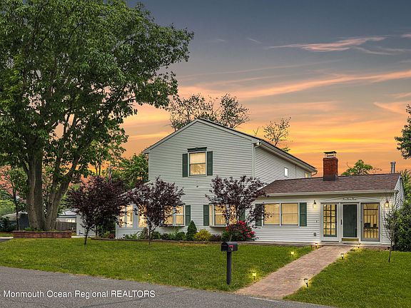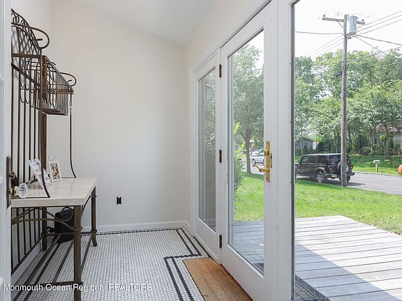 The first floor also includes a fully remodeled hall bathroom with a two-story skylight and a custom-tiled walk-in shower. Two oversized bedrooms with vinyl flooring complete the downstairs area. The first-floor master bedroom features sliders that lead out to the deck, offering a private retreat in the backyard. Venturing upstairs, you'll find three spacious bedrooms, all showcasing hardwood flooring. The hall bathroom on this level also features a skylight and a tub surround, providing a bright and luxurious bathing experience.