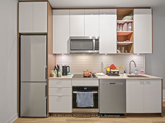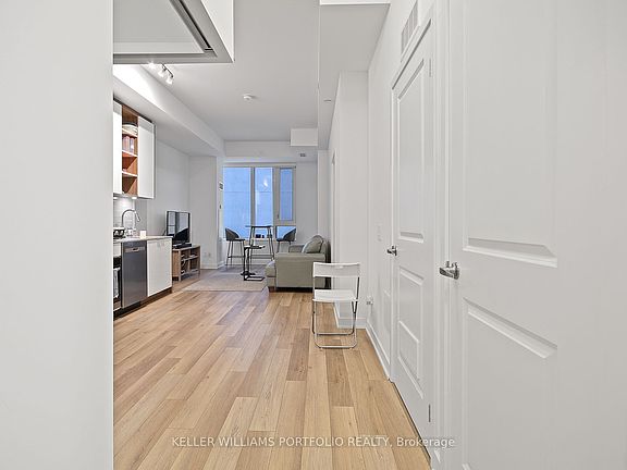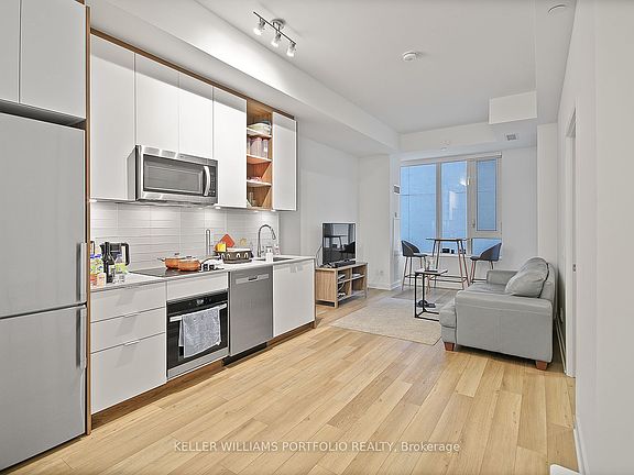 Thoughtfully designed 1 + 1 with 2 bathroom condo in the heart of the Fashion District - Where modern living meets everyday convenience. Floor to ceiling windows with plenty of natural light making it bright and inviting. Den is a separate room and can for example be used as a home office. Stylish cabinetry w/ modern flooring and countertops. Prime location close to Loblaws, Winners, Public transit, dog parks, coffee shops, and a mix of restaurants and boutiques that make the neighborhood vibrant and walkable. Building amenities include: concierge, fitness center, lounge and party room, games room, outdoor BBQ terrace, pool, and a roof top patio with unbeatable skyline views.