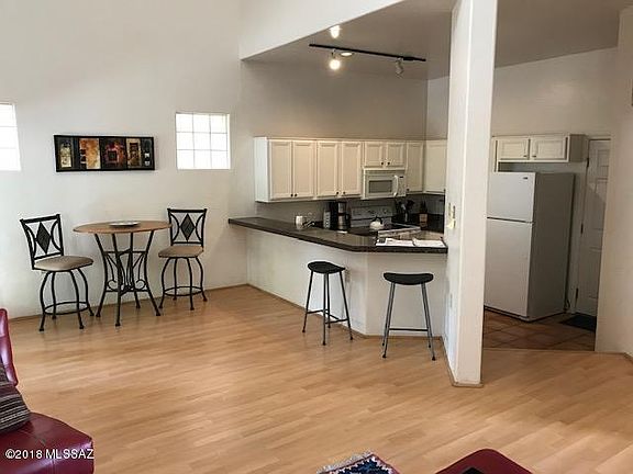 CONVENIENT WEST FOOTHILLS- MINUTES TO DOWNTOWN & MODERN STREET CAR HUB. COZY, 2 STORY, 3 BED 2.5 BATHS. FLOOR PLAN FEATURES DOWNSTAIRS MASTER BEDROOM W/ FULL BATH + POWDER ROOM. UPSTAIRS~ MASTER SUITE #2 AND 2 MORE BEDROOMS AND LOFT LIVING ROOM. FIREPLACE IN LIVING ROOM AND AND BATH: UPDATED KITCHEN AND BATHS, NO CARPET THROUGHOUT! ALL FLOORING IS LAMINATE & SALTILLO. HOME IS LIGHT AND BRIGHT W/ VAULTED CEILINGS, SKYLIGHTS AND CEILING FANS. LOVELY SCREENED IN AND PRIVATE ARIZONA ROOM OFF DINING AREA AND DOWNSTAIRS BEDROOM- FRENCH DOORS OFF BOTH ROOMS TO PATIO. BONUS DARKROOM OR WORK SPACE IS (HEATED AND COOLED) EASY CARE HOME WITH CITY AND MOUNTAIN VIEWS. ALL THE CONVENIENCES OF CITY LIVING NESTLED UP TO THE TUCSON MOUNTAINS! LOW HOA- $42/M