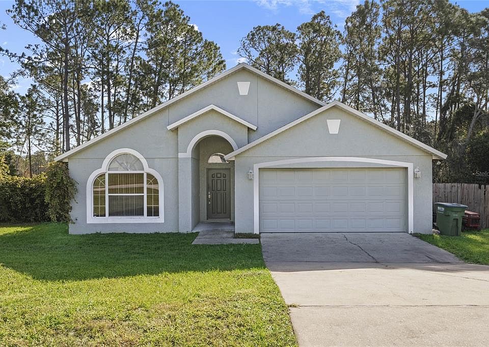 DELTONA: Welcome home to this 4 bedroom 2 bathroom home with over 1,800 sq ft on a .41 acre lot. NEW roof 2021. This home features a formal living room that would also make a great work from home space. The open kitchen/family room combo is very spacious and the sliding doors allow for private backyard views and natural light to flow into the home. The kitchen boasts a center Island, stainless steel appliances and plenty of counter and storage space. The dining area is off the kitchen for easy meals and entertaining. The Primary suite features sliding doors to the backyard, ceiling fan, walk in closet and En Suite bathroom. The Primary bathroom has duel sinks, garden tub and walk in shower! Additional bedrooms are spacious and share a guest bathroom. Inside Laundry room for convenience. The covered back porch is a great spot to enjoy morning coffee and observe nature. The ceiling fan helps keep you cool during the hotter months. Back pool area needs some TLC to make it everyone's favorite spot to enjoy during the summer months. The large lot is very private and there is room for everyone to run and play! The location is close to restaurants, stores and quick commute to I-4. Don't wait! Make your private appointment today to see all the home has to offer you! **The info in MLS is thought to be correct but not guaranteed**