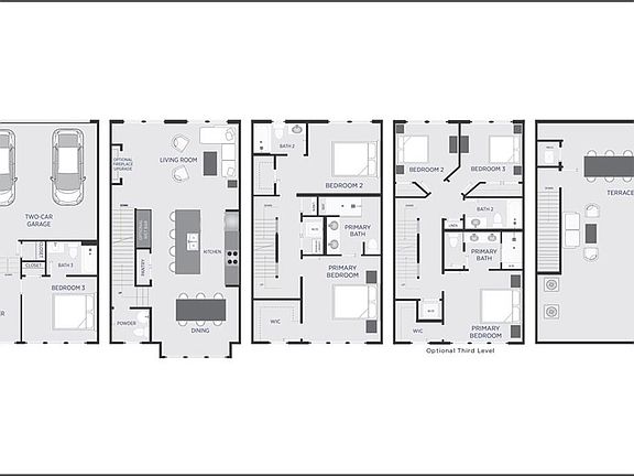 Life in the Village Starts Here! The Wright Plan is located in Building 1 on Stokeswood Avenue. This 3-story, 3 bedroom, and 3.5 bath home designed with an open floor plan and large windows to flood each floor with natural light and offers wide plank flooring, thoughtful designer finishes, custom lighting, an optional fireplace, and rooftop terrace. Enter the home on the first level with a bedroom and en-suite bath. The second level, perfect for entertaining, offers a gourmet kitchen with custom cabinetry, a large island, stainless steel appliances, a large pantry, an optional wet bar, a spacious living room with an optional fireplace, a dining area with large windows, and a powder room. On the third level, you will find the spacious primary suite with a luxurious, double vanity bath and large walk-in closet, a secondary bedroom with an en-suite bath, and a convenient laundry room with optional built-in cabinets. Enjoy the outdoors year-round on the roof terrace, with upgrade options available.