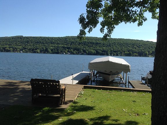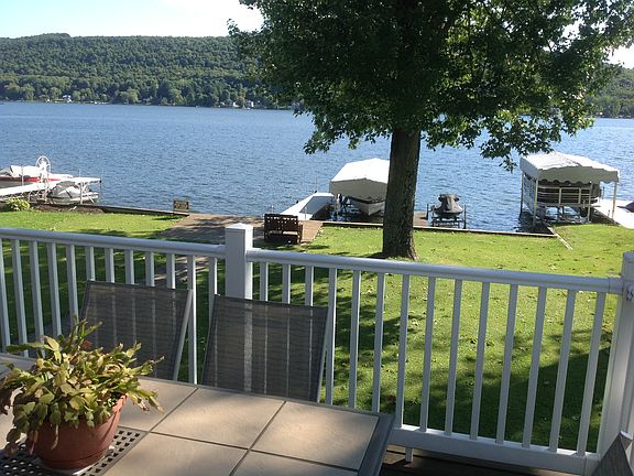 If your dream is to live on the water, look no further! This year round home on the West side of DeRuyter Reservoir has 50 feet of waterfront footage. Your new home has water views from all 3 levels. Wait until you get a look at the outside entertaining area! This property includes a 6-car garage and another 1.52 acre lot. The home features 4 bedrooms including a master bedroom with large windows for a clear water view. Move in and start living your best life! Additional 288 sq ft in sunroom.