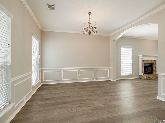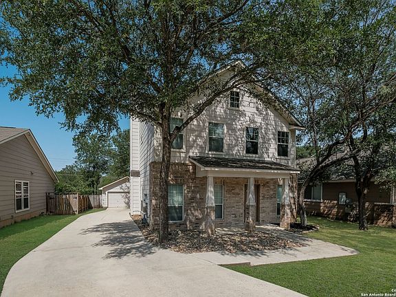 Nestled in the peaceful and serene areas of Trophy Ridge, this stunning two-story home offers both comfort and style. With 3 bedrooms and 2.5 baths, the open floor plan creates a welcoming atmosphere, perfect for entertaining and everyday living. The separate dining room provides a formal setting for gatherings, while the island kitchen offers ample counter space and functionality for cooking enthusiasts. All bedrooms are conveniently located upstairs, including the spacious master suite, which features a full bath, double vanity, and relaxing garden tub for a spa-like retreat. Enjoy the warmth of the inviting fireplace, adding charm and coziness to the living space. Outside, the home backs to a scenic greenbelt, ensuring privacy and beautiful nature views. The backyard is a perfect oasis, complete with a privacy fence and mature trees, offering a tranquil escape. Located just minutes from 1604 and Potranco, this home provides easy access to shopping, dining, and top-rated schools while maintaining its serene ambiance. Don't miss the opportunity to make this beautiful Trophy Ridge home your own-schedule a showing today!