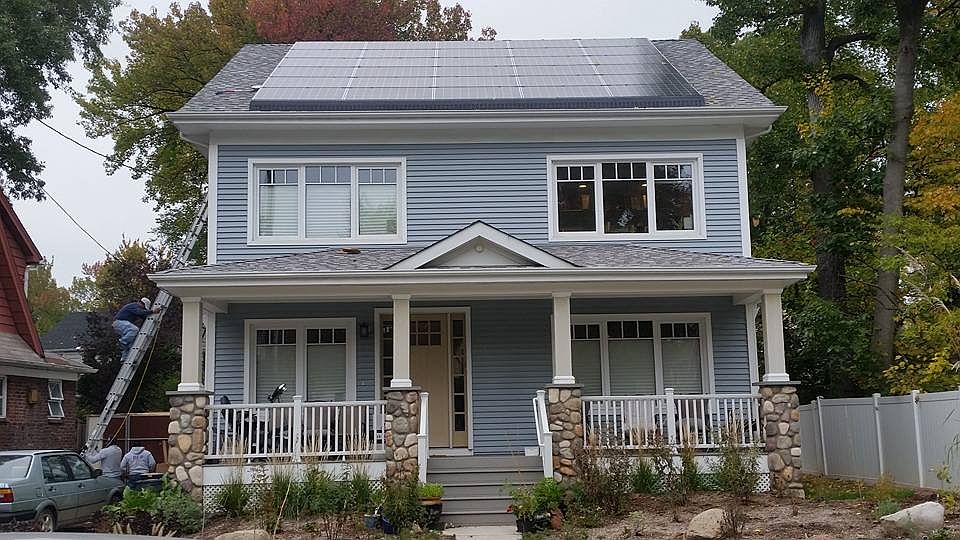 New home, built in 2014 with a very traditional styling aesthetic that fits its neighborhood. This home is certified as meeting the PHIUS Passive House Plus specifications for energy efficiency. It also has a solar electric power system. First floor has open-floor plan living room/dining room/kitchen, plus a guest bedroom and full bath. Second floor has master bedroom/full bathroom suite, laundry room, office with loft, and library. Unfinished dormered attic with storage room. Unfinished basement with 9-foot ceiling and two egress windows. Full-width raised front porch. Rear deck. Three-car driveway.