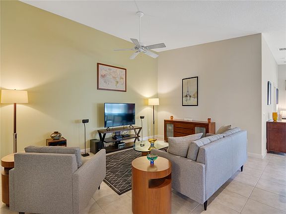 Meticulous one-owner home gently lived in part time w/beautiful lakefront location and short walk to the fab clubhouse, where you'll enjoy organized activities, a resort-style pool, fitness, and much more. Over 1500 sq ft of sunny living space with a smart, split floor plan & open living areas, giving you many options for room/furniture placement, a hallmark of the Capri model. Also notable in the master suite is the reinforced walk in closet/storm safe room, w/steel door & locks. In the evening, retreat to the sanctuary of the porch to relish sunsets, ducks, & your great life. Not flood zone.