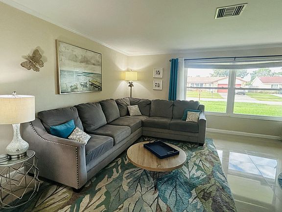 Move-in ready 3/2/2 with salt-water pool; cabana master bath and screened-in porch. Travertine and marble-like flooring throughout living areas. Updated open layout kitchen,solid wood cabinetry, stainless steel appliances, huge island for entertaining, upgrades everywhere! Extra-wide driveway for 3+ cars. New roof 2025. New A/C 2024. This pristine home is in perfect condition. Includes clear storm shutters. Impact front door and front bedroom window. Centrally-located near Lantana square, shops and much more.