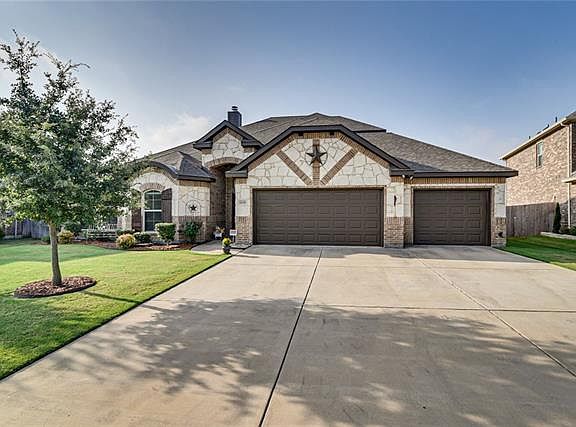 This beautiful John Houston home is in the heart of The Rosebud subdivision. Enjoy your Texas summers in the pool just across the street; the park is a short walk around the corner. Natural stone elevation with brick soldier accents, 3-car garage and plenty of parking off the street. All 4 bedrooms are downstairs, but the upstairs bonus room with half-bath could easily be a 5th bedroom if needed. California-style kitchen, 3cm granite with under mount sink, and custom stained cabinetry. Back patio has been extended, and the hot tub & shed convey!
