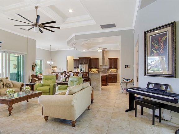 Welcome to the crown jewel of Manatee Bay, a gulf access boating community on beautiful Pine Island. Walking into this home you are greeted by the foyer leading into the spacious living area including the custom kitchen, dining room and great room with custom chandeliers, lighting and a soaring tray ceiling. A custom designed home built in 2016 to the latest standards, no expense has been spared with upgrades. Beautiful ceramic tile throughout including the enormous garage, saltwater swimming pool, two boat lifts including a covered 12,000# lift, 90 degree sliders, hurricane impact doors & windows and electric roll down impact fabric shades surrounding the lanai. There is also an enormous bonus room currently being used as an art studio, but could easily be a home theatre, fitness room, large office or work shop. There is even an air conditioned room for fishing rods, tackle and pool equipment. This enormous homesite boasts a brand new 400+ sq' shed that can be used as an additional garage or workshop. You will love this amazing home. By appointment only.
