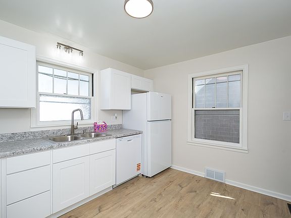 2 Garages with New Roofs (2025). Welcome to this charming Moline bungalow that has been beautifully updated and brought back to life. This home offers 2 bedrooms, 1 bathroom, and two separate one-car garages, each with new roofs (2025). Located in the Franklin Elementary School District. Upon entry, you'll immediately notice the recent updates, including fresh paint and luxury vinyl plank flooring throughout.The home features a nicely sized living room and a fully renovated kitchen complete with new white cabinets, countertops, stainless steel sink, and appliances. Both bedrooms are conveniently located on the same level. The updated full bathroom showcases a new tiled shower surround, vanity, and toilet. Additional improvements include new central air, new exterior doors, updated landscaping, modern fixtures, and a new exterior railing, making this home truly move-in ready! Buyer and buyer’s agent to verify all information, including square footage, room sizes, school zones, taxes, exemptions, and zoning. Measurements are approximate. Room sizes generated from Matterport tool, approximate.