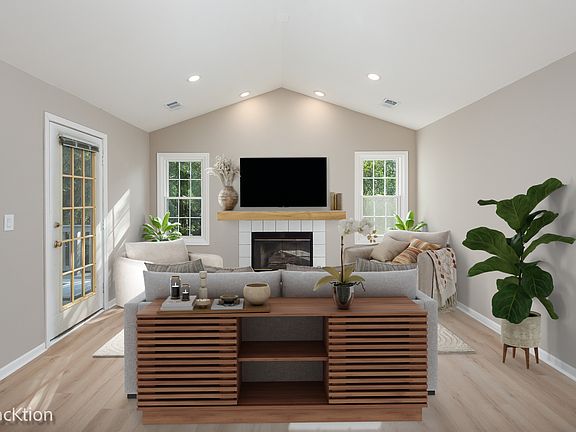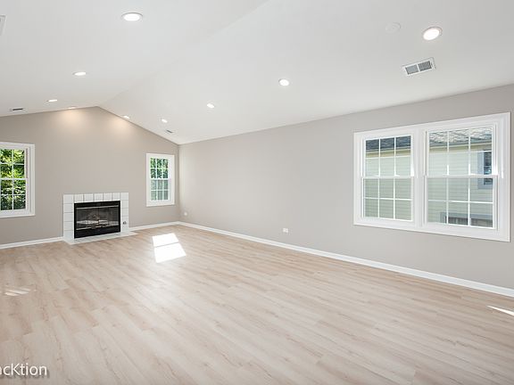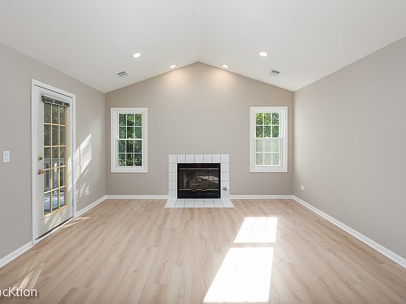 Like-new construction and tucked away on a quiet cul-de-sac street, this stunning three-bedroom, two-bathroom end-unit townhome offers the perfect blend of privacy and convenience. Filled with natural light, the interior features fresh paint, brand-new vinyl flooring, recessed lighting throughout, completely updated kitchen and bathrooms for a modern touch. The eat-in kitchen is both stylish and functional, showcasing new 42" cabinets, soft-close drawers,new quartz countertops, a subway tile backsplash, and a newer oven/range and dishwasher. The spacious living room shines with vaulted ceilings, recessed lighting, and a cozy wood-burning gas fireplace, with door that open to a private deck-ideal for relaxing or entertaining. The primary suite is a true retreat, boasting a dramatic vaulted ceiling, new ceiling fan, abundant natural light, and a bathroom complete with a double vanity and lots of closets. A large third bedroom with walk in closet is thoughtfully separated from the others, making it perfect for guests, a home office, or added privacy. Additional highlights include new windows, a large laundry room with washer, dryer, and extra storage, an attached 2.5-car garage, and a newer furnace and A/C (approximately six years old). The back decking is scheduled to be repainted, pending association approval. Conveniently located near the train, expressways, and award-winning schools, this home combines modern updates, light-filled spaces, and an unbeatable location.