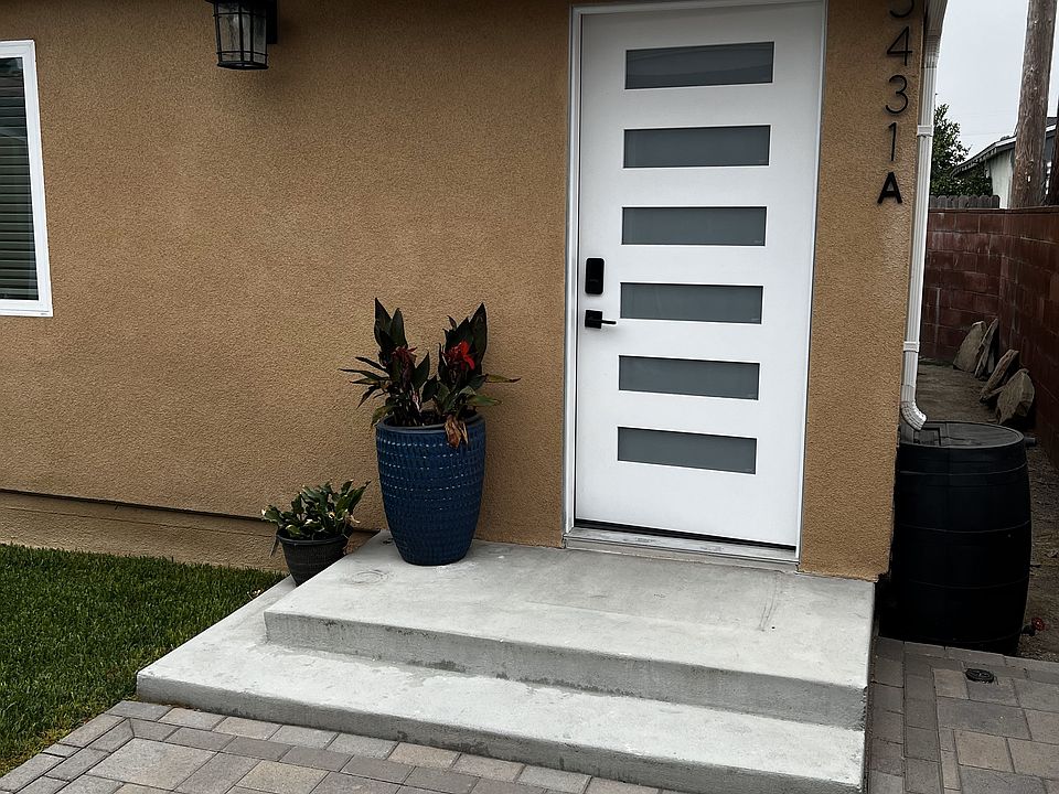 This is a back house, ADU. Like new condition. Open kitchen w/ island. Includes oven/range, refrigerator, washer & dryer. Nice size living room, 2 bedrooms with large closets. Ensuite .75 bathroom + second full bathroom. Solar electricity, central A/C and heat. Small private yard. One year lease. Tenant pays all utilities, separately metered. Street parking only. NO SMOKING.
