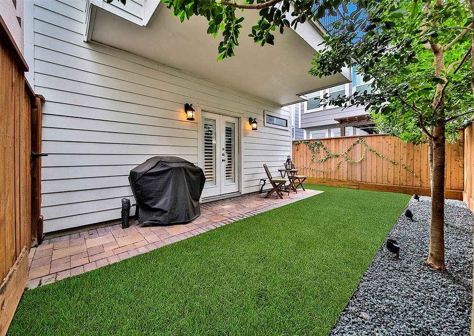 Your private oasis in the heart of the city awaits! Impeccably maintained dream home boasts the elusive trifecta of outdoor space, light filled tree-lined views & over $50k of upgrades. Enjoy year-round outdoor living w a fenced yard w low maint. synthetic turf, covered patio, towering trees & accent lighting. 1st floor guest suite. 2nd floor offers a gourmet island kitchen w SS appliances, granite, balcony & butler's pantry leading to open concept dining & living w gleaming wood floors, light filled views & spacious balcony. 3rd floor offers a guest suite, laundry room, & lavish owner's retreat w wood flooring, massive walk in closet & luxuriously remodeled spa bathroom. No HOA dues. No flooding. Extra parking. Fully move-in ready w new carpet, recent AC '18 & hot water heater '16, all appliances & home theater system included. Enjoy a secluded & private location while being minutes from hike & bike trails/Memorial Park w easy access to downtown, the Galleria, shopping & restaurants.