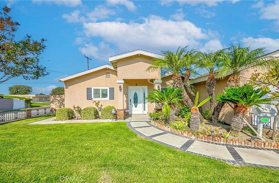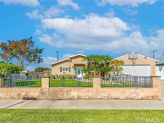 Gorgeous Remodeled Single-Level Home in Highly Desirable Cypress! Perfectly situated on a generous corner lot, this beautifully updated residence offers a rare and expansive single-story floor plan featuring 4 bedrooms, 2 bathrooms, and approximately 1,939 sq ft of living space on an approx. 6,500 sq ft lot. You're welcomed by a lush front yard, gated entry, and charming front porch framed by a dramatic architectural arch, setting the tone for this home's exceptional curb appeal. Step inside to a completely open-concept layout with a spacious living room featuring a cozy fireplace, recessed lighting, and abundant windows that flood the home with natural light. The living space seamlessly flows into the formal dining room, making it perfect for gatherings and entertaining. The elegant gourmet kitchen boasts chic white cabinetry with modern hardware, granite countertops, a stylish backsplash, stainless steel appliances, and a center island/breakfast bar ideal for casual dining. The private primary suite offers a spacious closet and an updated ensuite bath with a walk-in shower. Three additional bedrooms are generously sized with ample closet space. The oversized hallway bath includes a shower-in-tub combo. A convenient indoor laundry area adds functionality and ease. The backyard is an entertainer's dream, featuring a covered patio, plenty of open space for outdoor dining and relaxation, and a variety of fruit trees including lemon, orange, and jujube. The attached 2-car garage provides direct access and includes an EV charging hookup. Located in a prime Cypress neighborhood near award-winning schools, parks, shopping, dining, entertainment, bike trails, and convenient access to the 605, 405, and 91 freeways. Don't miss this incredible opportunity, homes like this rarely come on the market!