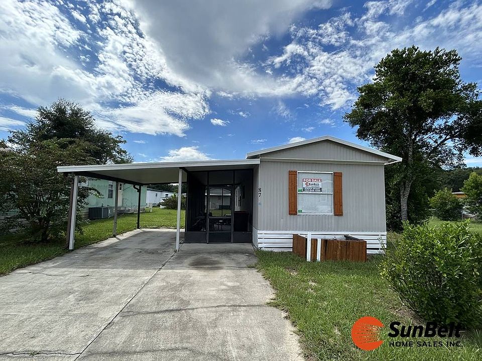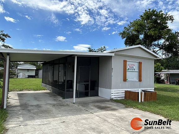 Lindale Mobile Home Community in Silver Springs, Florida is a Family Park for All Ages. Our peaceful property features Manufactured homes on beautifully manicured park-like grounds. Conveniently located near Silver Springs State Park and 5 miles from Ocala Downtown Square. We are a pet-friendly community and welcome up to two of your four-legged friends. WOW this home offers 2 bedroom & 1 full baths inside laundry with lots of upgrades. Split bedrooms, 10 x 20 carport, 8 x 24 screen room, spacious yard and room for a shed. Double side by side parking. Solid subflooring with new laminate flooring. 2024 - Bathroom Cabinet, laminate flooring, shower enclosure, laundry room cabinet. 2025 - drywall ceiling throughout, crown and baseboard molding throughout, interior doors, kitchen faucet, electrical outlets and covers, light fixtures, bathroom window, bathroom ceiling and walls are moisture proof board, fixtures in the bathroom, fresh paint, sealed metal roof, new GE 14,000BTU window unit. The lot fee here is $558 a month for an all age family park and includes trash service & Playground. Call today to view this property. This home is priced to sell and will go fast!!