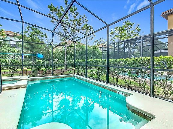 This fully furnished, five-bedroom, five-bath vacation home in Solterra Resort offers a premier short-term rental, second home, or vacation residence opportunity. The expansive open-concept design features a bright living and dining area with vaulted ceilings that flow seamlessly into a well-appointed kitchen with adjacent laundry. Two generous main-level bedrooms include one with direct pool-deck access, supporting effortless indoor–outdoor living. The outdoor retreat boasts a heated pool and spa, ideal for year-round entertaining. The garage has been converted into a game-and-media space, adding instant guest appeal. Upstairs, a loft opens to a Star Wars–themed media room, complemented by three additional bedrooms, including Frozen- and Toy Story–themed rooms, ensuring wide kid- and family-friendly appeal. The primary suite offers a spa-like en-suite with soaking tub and separate shower. Resort amenities at Solterra include a pool, spa, lazy river, snack bar, fitness center, and tennis and volleyball courts, enhancing guest experience and value. Convenient access to Orlando’s top attractions—SeaWorld, Walt Disney World, Universal Studios—along with abundant shopping and dining options, positions this property as a compelling investment with strong rental potential and lasting appeal.