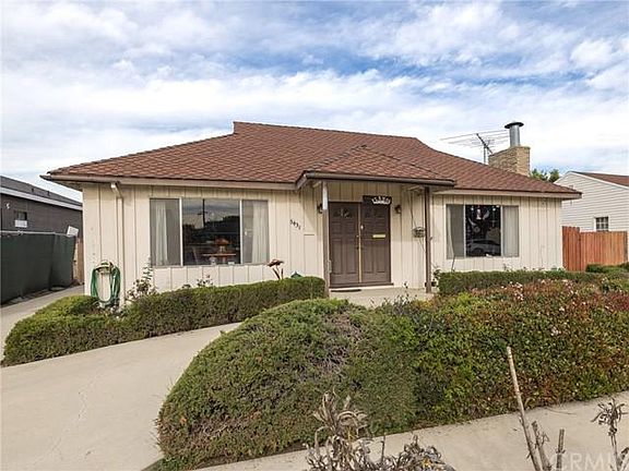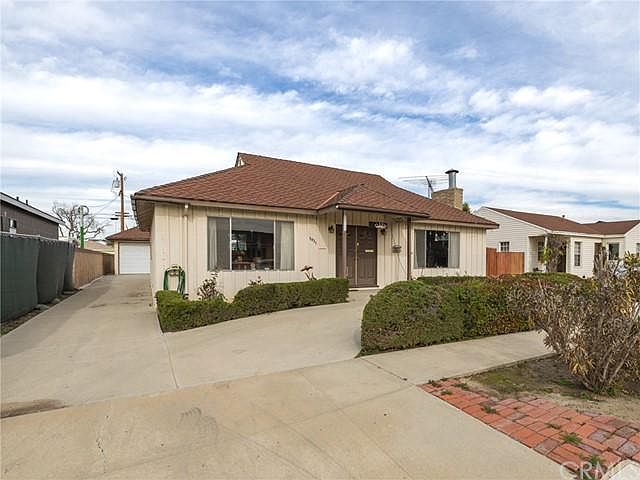 Impressive 3 bedroom and 3 bath ranch style home with horseshoe driveway and outstanding oval pool on 7,829 square foot lot. Double door entry into the living room with statement floor to ceiling mid-century modern rock wall fireplace, wood flooring, and picture window. The spacious dining room flows beautifully into the kitchen complete with bar seating, an eating area, plenty of counter space, and an adjoining laundry room. The generous-sized primary bedroom has lots of closet space and storage, the adjacent bathroom has double sink vanity, soaking tub, and separate stall shower. There are two additional bedrooms and one bathroom with a tub/shower combination. The backyard is amazing with a patio, oval-shaped pool complete with diving board, cabana, outside bathroom, and sauna. Additional features of this home include a detached two-car garage and a tankless water heater. The possibilities are endless with this home!