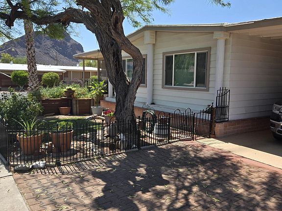 Beautiful, North facing home that sits on a corner lot with gorgeous views of the Tucson mountains. This inviting 2 bedroom and 2 bath home features a large open kitchen with stainless appliances and roll-out shelves, charming bar, sitting area, dining room and a spacious living room. It has a warm and welcoming feel throughout. The large den is just off the back of the enclosed patio and has plenty of work space. Spacious master bedroom, large walk-in shower. Guest bedroom has a beautiful armoire/closet. Golf cart garage AND golfcart! Low maintenance landscape. Please see documents for additional information.