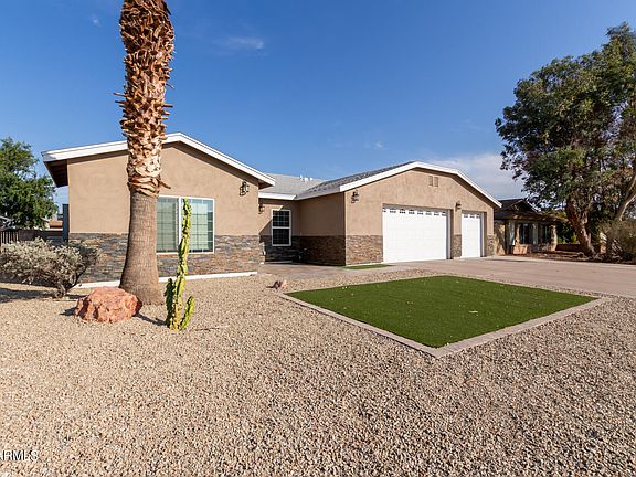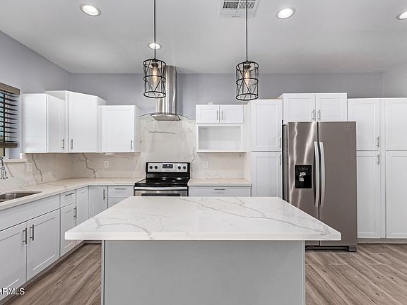 LOCATION, LOCATION, LOCATION - Great find in Glendale, close to ASU, Westgate, golf, entertainment. Only a few minutes to ASU West! Awesome 5-bed, 3-bath home ready to go! Bring all your vehicles with the 3-car garage plus an extended driveway. Enjoy your own private pool. The great open layout features tile flooring throughout, neutral paint, and recessed lighting. Wide-open kitchen showcases sleek quartz counters and backsplash, stainless steel appliances, white cabinetry, and a center island with a breakfast bar. You will love the ample main bedroom boasting sliding doors to the backyard, a walk-in closet, and an ensuite with a tiled shower and dual sinks. In the backyard, you'll find synthetic grass, a gazebo, convenient storage, an exterior shower, and a sparkling blue pool. Artificial grass means not law to cut or water to waste! Just a few blocks away from Sunset Palms Park with entertainment for the whole family and furry friends too! Close to shopping, Top Golf, entertainment, grocery stores, and West Gate nightlife (NFL) Washer & Dryer are included as well. Bedroom has sliding door out to the pool. This house is move in ready and a newer modern build!!!