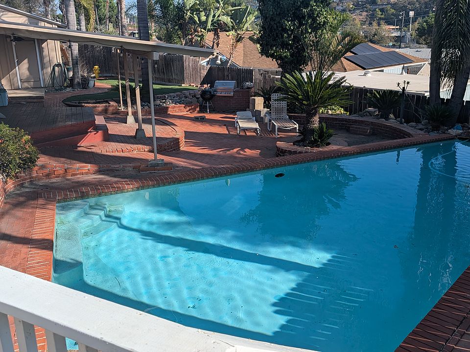 House For Rent! 4Bd/2.5Ba. Four bedroom two and a half bath house with pool/jacuzzi in North West La Mesa near Lake Murray (Across the freeway from DZ Akins). Open beam ceilings in most of the 2000+ square feet with a Cabin Feel, Air conditioning, Whole House Fan, heater and a large fireplace along with a large driveway and garage. The master suite includes full bathroom with private deck and a spiral staircase to a view deck on the roof. Large covered patio in the backyard with low maintenance turf and built-in barbecue. Pet friendly with approval and deposit. The house will be ready 1st of October. Rent per month is $4850. Landlord pays the water bill. Tenant pays for electricity, gas, trash, internet, cable, telephone, etc. Great neighborhood. Close to ALL