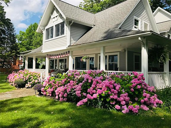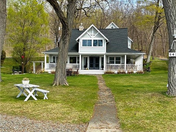 This is the lakehouse we've all admired! The gorgeous home boasts over 2400sf,4 bedrooms,2 full baths,hardwood floors throughout,a lake facing family room with gas fireplace,a second family room/den/office with built-ins,a fully updated kitchen open to the eating area and custom bar/service station complete with wine fridge,second floor laundry,second floor sleeping room or office,a 500sf wrap around porch and a 2.5 car attached garage.The kitchen and bar area have high end stainless appliances,custom white cabinets and soapstone countertops.The first floor full bath has been updated to the same standard.A 500sf room over the garage was finished and is lined with closets allowing for a fourth bedroom, workout space or office.The almost 1/2 half acre level lot is set on a point which provides an expansive yard with 94 feet of beach access and deep water.Tiered gardens,hardscaped walls and mature plants and flowers finish off the exterior.New tear off roof and skylight replacement in 2017.Aluminum docks included.Over $200k in updates on this stunning home.Showings start 4/20 at 11am.Delayed negotiations are Tuesday,4/25/23 at 12:00pm.This home is truly a gem!!!
