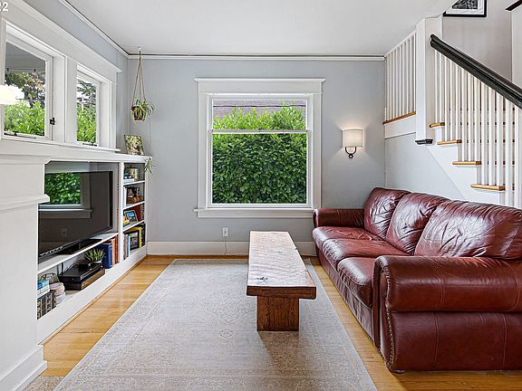 Outstanding 1922 Dutch Colonial with great curb appeal! Large windows & bright, sunlit rooms illuminate historic charm w/ original wood floors, built-ins, French doors, fixtures and fireplace. All bedrooms on second floor. Peaceful, covered side porch w/ beautiful Wisteria and views of cherry blossom trees each spring. Large, private backyard. Tons of potential in spacious, unfinished basement. Excellent neighborhood; just blocks from Fremont restaurants and beautiful walks on the Alameda ridge! [Home Energy Score = 3. HES Report at https://rpt.greenbuildingregistry.com/hes/OR10203365]