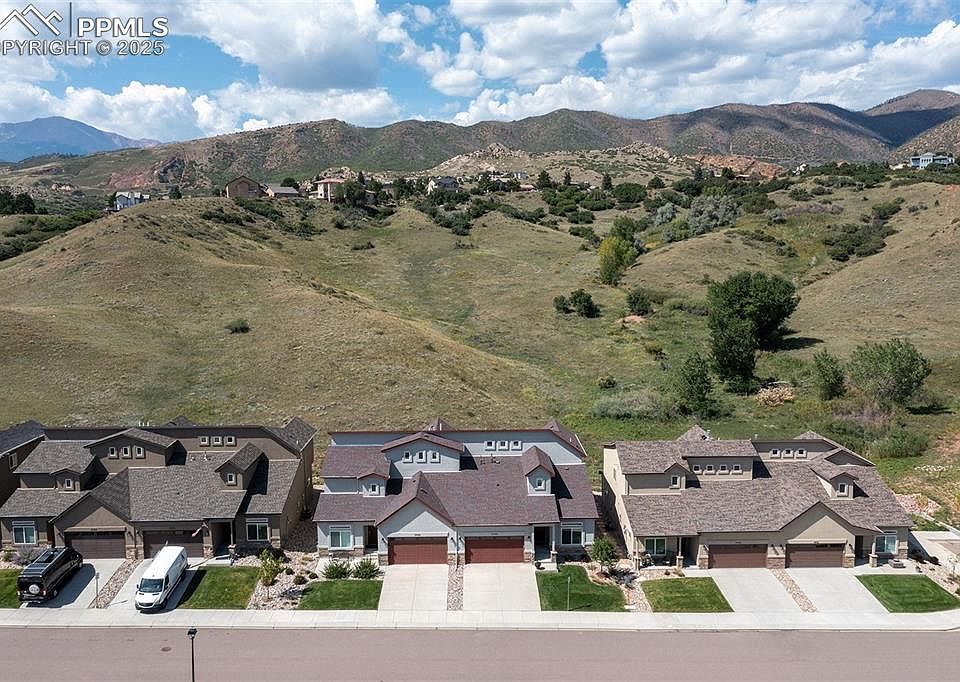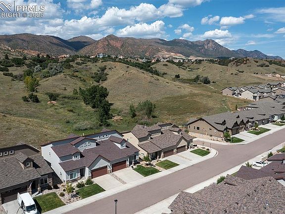Luxury, maintenance-free living with awe inspiring views and a modern mountain lifestyle on Colorado Springs west side. This like-new, upscale 4 bedroom Mountain Shadows patio home is ABSOLUTELY STUNNING with beautiful farmhouse accents, a fantastic open floor plan, and breathtaking mountain views you must see to believe! Situated on THE premier lot in the 54-home community, property boasts amazing views from the private 37x16 rear patio that showcases gorgeous sunsets & sunrises over the foothills of Mountain Shadows Open Space. Welcome to your private west side sanctuary! Looking to right size with main level living? Home is perfectly sized & well designed with a comfortable 2,537 sq ft of upscale living space. Main level includes primary suite with stunning foothill views & a 2nd bedroom (or home office) off the entry next to 2nd full bath. Primary bath includes dual vanities, large walk-in shower with seat, & convenient walk in closet with built-in organizer & direct access to main level laundry. The home is bathed in natural sunlight with vaulted & high ceilings throughout & extensive windows. Large open kitchen with an expansive island includes SS appliances, gas stove, granite counters, farmers sink & pantry. Well appointed dining and living areas with a beautiful, modern stone gas fireplace open to kitchen with walk out to patio offering covered & uncovered spaces with metal fencing & gas line ideal for entertaining. Prepare to be awe struck when you ascend to the upper level & discover the HUGE open loft with a soaring ceiling, tons of natural light & captivating foothill views! Loft space makes a great family room with separate space for a gym, craft or play area along with two more large bedrooms & a full bath. Energy efficient furnace, AC & water heater for low utilities. Attached 2 car garage shines with newly added polyaspartic floor coating, overhead storage & 220V. Ideal location near many hiking/biking trails, Ute Valley Park & 7 minutes to I 25.