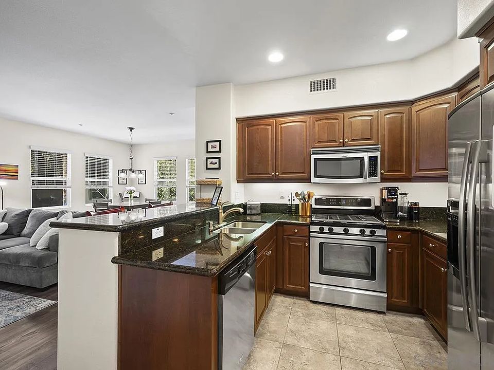 Welcome to 5432 Zeil Place in newer built Parc @ 54. This tri-level townhome adjacent Colina Park Golf Course and Colina del Sol Community Park affords two bedrooms plus a den/optional 3rd bedroom; 2 full baths, plus 2 half-baths. Super desirable and peaceful end unit located in one of the quietest interior buildings in the complex away from the street. There is a 45 foot deep tandem direct access garage, full size laundry off the kitchen on the 2nd level, and air conditioning too! *Low HOA dues of $340/mo. A fantastic opportunity located minutes from SDSU, a few miles from North Park, and central to everything San Diego has to offer. Rarely available and always desirable 2 bedroom + den townhome offering in Parc @ 54. Be sure to view the 3D virtual tour! This ground floor entry, tri-level end unit townhome has 2 bedrooms and 2 full baths on the top floor; kitchen, laundry closet, living and dining room along with a half bath, patio on the 2nd floor; and a den(optional 3rd bedroom) with half bath, and the deep tandem garage on the ground level. Fantastic opportunity here in a well maintained newer built complex with 9 buildings and a total of 90 units. Low HOA dues of $340/mo! Multiple BBQ areas, playground, and guest parking spots throughout complex. FHA and VA approved. See you in escrow.