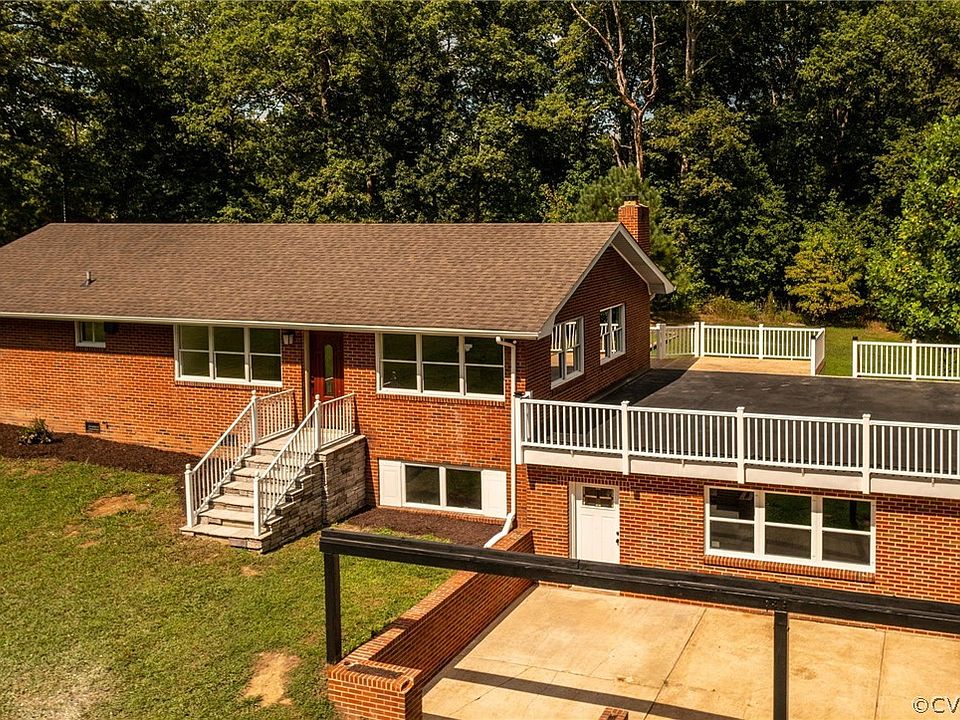 !!WELCOME HOME!! RARE OPPORTUNITY NESTLED ON 4.86 PRIVATE ACRES, THIS IS AN ENTERTAINERS DREAM! ONLY MINUTES TO THE HIGHWAY AND AN EASY DRIVE INTO RICHMOND, & 6 MINUTES TO RICHMOND NATIONAL AIRPORT! THIS BEAUTY HAS BEEN COMPLETELY RENOVATED..ALL ITS MISSING IS YOUR FURNITURE! ITS FEATURES INCLUDE A FLEXIBLE FLOOR PLAN THAT CAN SUIT ANY LIVING SITUATION, EASILY MAKING ALL OF YOUR DESIGN IDEAS COME TO LIFE; CLASSY WAINSCOTING AND CROWN MOLDING, ALL NEW EAT-IN KITCHEN WITH GRANITE COUNTERS, STAINLESS STEEL APPLIANCES, PANTRY, AND BREAKFAST ISLAND BORDERING FAMILY ROOM MAKING IT PERFECT FOR ALL OF YOUR INDOOR ENTERTAINMENT NEEDS; COZY WOOD BURNING FIREPLACE WITH BEAUTIFUL WHITE WASHED MANTLE, BRAND NEW CARPET & HARDWOOD FLOORING, BRAND NEW BATHROOMS, BRAND NEW HVAC, BRAND NEW ROOF, BRAND NEW WATER HEATER, YOU NAME IT! PARKING IS A BREEZE WITH FULL CIRCLE DRIVEWAY LEADING DOWN TO LARGE PATIO & OVERSIZED 2 CAR GARAGE, & HUGE GARAGE ROOFTOP DECK FOR ANY AND ALL OUTDOOR ENTERTAINING. THIS ONE IS AN ABSOLUTE MUST SEE!!