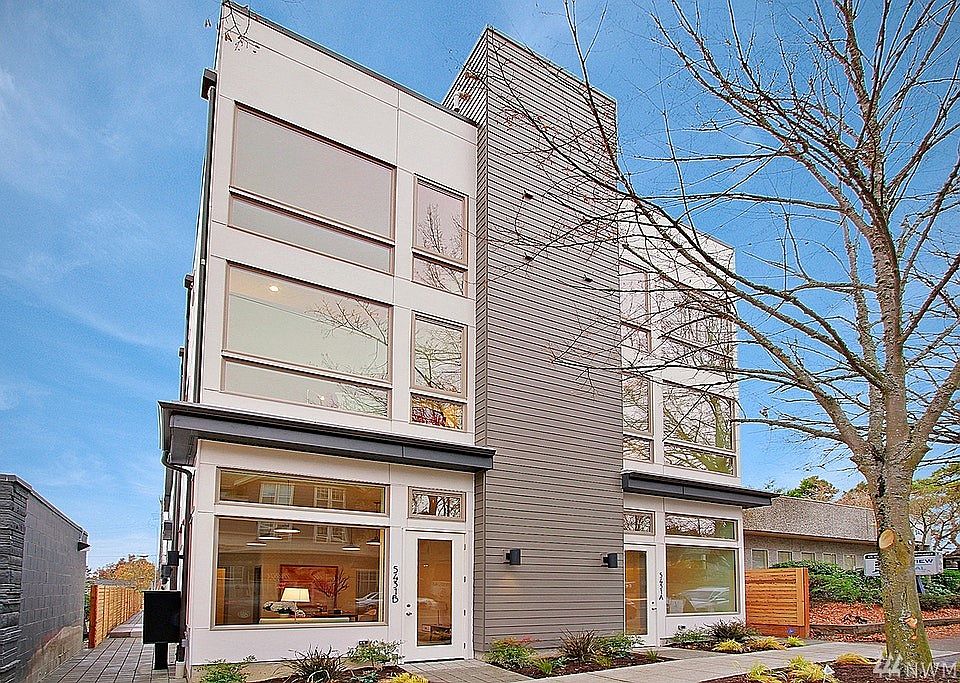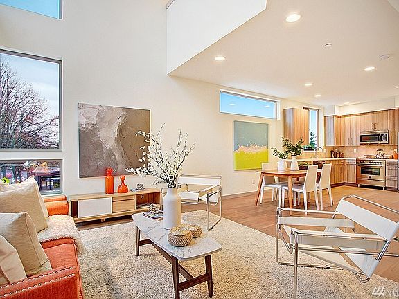 3 homes SOLD! Rare new Live/Work Modern home captures incredible roof top deck views of Puget Sound & Olympic Mtns! Commercial space features vaulted ceilings w/polished heated concrete floors & tiled bath. Separate entry leads to the spacious living area showcasing exceptional design coupled with superior accents. Smart layout offers gorgeous hardwoods & efficient kitchen with soaring ceilings. Loft Master Suite w/office space. Walk to the vibrant Alaska/Morgan Junctions. Hurry, 4 homes left!