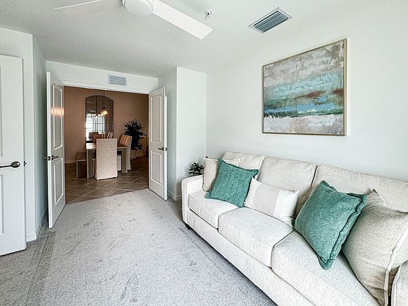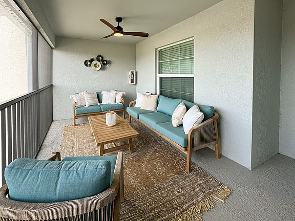 This is the creme de la creme, when it comes to waterfront golf villas. Wake up to STUNNING sunrises every morning.... over magnificient water and golf course views, in your tastefully appointed, home away from home. Enjoy the expansive views from this designer-decorated, colors-of-the sea Veranda unit, within walking distance to all the amenities including resort pool, tennis, pickleball, fitness center, spa, driving range, golf pro shop & outdoor bar and grille. The DiAngelo model offers ample space with 2 bedrooms + den, a large, open great-room with living, dining, and kitchen area, 2 screened lanais. 2 baths, all appliances including washer and dryer in your unit. Open the slider doors and enjoy the heavenly Florida cross-breezes blowing off the lake. Sleeps 6 comfortably. Price INCLUDES the 11% Florida "hotel tax" PLUS BUNDLED Golf privileges, which means NO greens fees and privileged tee times. Only a $30 golf cart rental to play 18 holes during the high season! Small pets allowed on a case-by-case with a $500 pet deposit, refundable with no damages. A $150 background check gets the process started, $250 HOA fees, includes golf privileges, Enjoy the Ave Maria Town Center with outdoor dining, shopping, and all the necessities at your fingertips. A weekly Farmer's Market, craft shows, antiques, and concerts round out the Winter events. Come and see what everyone is talking about in Ave Maria, the 16th fastest-growing community in the entire United States! Once you get here, you'll "get it... and you'll never want to leave!