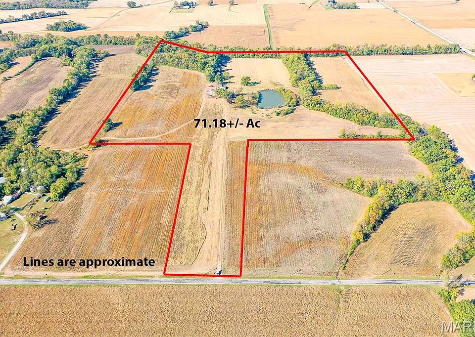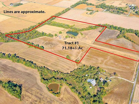 Price listed is Starting Bid Only. Bidding starts closing 11/18/2025 @ 5 p.m. TRACT 1: This is a rare opportunity to own approximately 71.18± acres of combined tillable, residential, and recreational land just off Kraft Road, only three miles west of downtown Freeburg in St. Clair County. Nestled within this expansive tract is a three-bedroom, two-bath farmhouse featuring a tuck-under garage and multiple outbuildings. The home opens to a spacious living and dining area, warmed by a wood-burning fireplace and illuminated by large sliding glass doors that lead to a deck overlooking a peaceful private pond situated at the rear of the property. Two generously sized bedrooms share a full bath off the main hallway, while the primary bedroom includes its own full bathroom and walk-in closet. A centrally located kitchen offers ample cabinet and countertop space and is ready for your updates. Additional features include a screened-in porch and a partial, unfinished basement. The home will require updates and repairs before occupancy. Of the total acreage, approximately 49.04± acres are productive farmland, offering crop-production potential and reliable income. With convenient access from Kraft Road, the property is ideal for expanding on an existing farm or launching a new agricultural operation. Zoned agricultural under St. Clair County authority, the property allows for single-family residence by right, preserving the rural character while supporting residential development. For non-agricultural or commercial use, the county’s variance or special-use process would apply, offering flexibility. Whether you are looking to grow a farming enterprise, build a private retreat, or invest in versatile land, this tract represents a unique and valuable opportunity in St. Clair County. In addition to the main parcel, five separate tracts; Tract #2 (5.09± acres), Tract #3 (5.12± acres), Tract #4 (5.12± acres), Tract #5 (5.13± acres), and Tract #6 (5.12± acres)—are also zoned agricultural and available for purchase individually, providing even more options to suit your vision. Property will sell under auction terms and be sold AS- IS, WHERE-IS. Seller, will not make any repairs as a result of any building, occupancy, or environmental inspections. Buyer will be required to sign an Auction Purchase & Sale Agreement if final bid is accepted by Sellers.