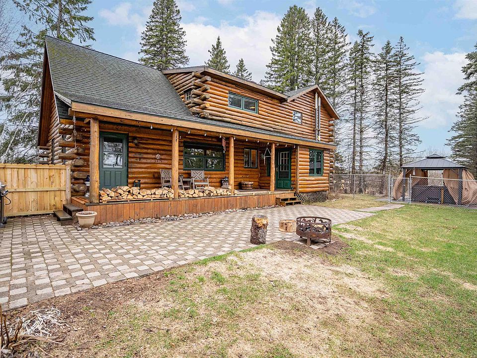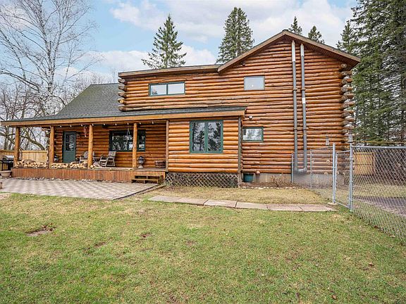 Discover a rare find! Become the proud new owner of this cozy log home, loaded with upgrades that you'll love. Located in Hermantown on this almost four-acre lot, this property has it all! The surrounding lots are privately owned so no developments going in alongside or behind your home! Inside, the home welcomes you with tall ceilings and a warm wood burning fireplace. The main level has two bedrooms and a totally renovated bathroom now including a deep soaker tub and a custom vanity. Storage is endless; you'll find closets on every level. Upstairs, the vaulted master bedroom overlooks the entire house offering a modern en suite bathroom and oversized walk-in closet. Upper loft is currently a work from home space but can easily transition into additional sleeping quarters. If you're looking for a third living room option the downstairs has a finished rec room and a fourth bedroom featuring maintenance-free maple flooring and great lighting. Enjoy the picturesque sunsets off the porch, gather around a fire, or practice your golf swing with a home driving range. Don't forget to check out the lower barn which offers four existing animal stalls with direct water and the upper pole building which currently serves as a 5+ car garage with designated RV parking. New electrical panel + wiring to all exterior buildings and water filtration system to highlight a few upgrades. Enjoy the well-manicured yard with a new fully fenced area, hot tub, and ranch entrance gate. See the full list of updates because we can't list it all! Call today to schedule a tour before it's gone!