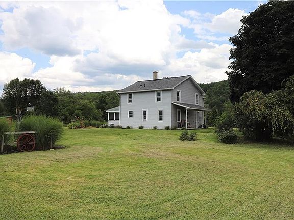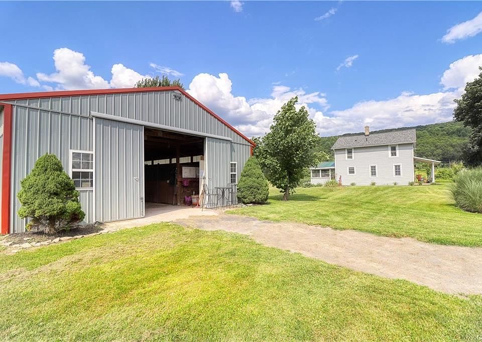 Over The River and through the woods is 17 acres on Creek Run Farm. In 2008 the owners had a 48 x 32 Conestoga horse barn built with 7 10x10 matted stalls. A separate Hay barn that's 42 x 30 that is original to the house. Five separate pastures, two with run-in sheds. Great country feel as soon as you walk into this home with a wood burning fireplace and living room. Separate dining room which has a slider leading to a three seasoned covered screened in porch. Deck was built to support a hot tub. No showings until August 1st see addenda attached