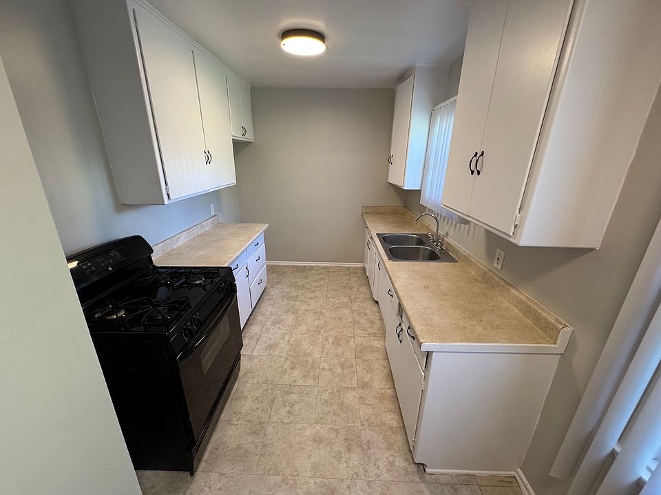 This large studio has hardwood floors throughout. The kitchen is a good size with white cabinets and comes with gas stove and plenty of storage.
