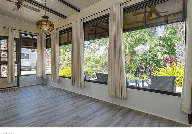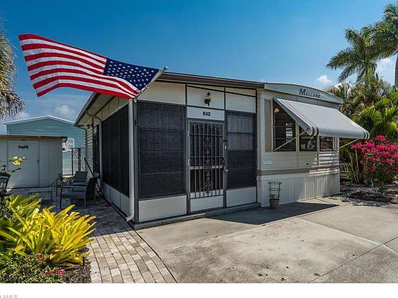 PET FRIENDLY, 2bed / 1bath home in beautiful, 55+ gated community. Clean Clean Clean!!! Homeowner owns lot (no lot fees!). Brand new vinyl plan (waterproof) flooring throughout. Spacious "Florida Room" overlooks the private side patio and lush garden. Washer/Dryer located in Shed on patio and has potential hookup inside. Partially furnished. New central A/C. Gulf access. America Outdoors offers private-inexpensive living with a clubhouse, pool, and other ammenities. Located minutes to Gulf Coast Town Center, Coconut Point Mall, RSW International Airport, and 15 minutes to the Gulf Beaches.
