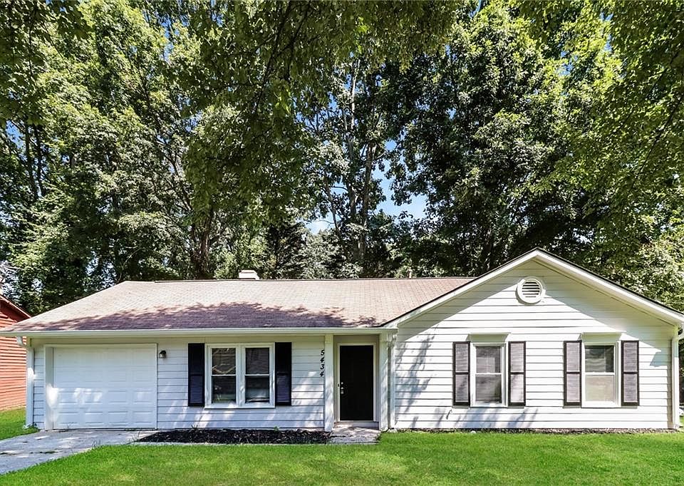This spacious ranch offers incredible curb appeal and plenty of room to spread out. Step inside to find high ceilings and a bright, open living space that includes a dining room and a cozy fireside family room. A separate breakfast room that leads into the kitchen, which features solid surface countertops, black appliances, and direct access to the back patio and private backyard. The primary suite includes a large walk-in closet and a private ensuite bathroom. On the opposite side of the home, you'll find two secondary bedrooms that share a bathroom.