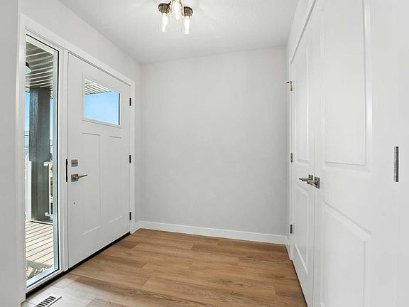 A brand new Larkaun Homes two storey with a front attached triple car garage and a walk-out basement! The curb appeal is accented by the composite-covered front veranda. The front entryway greets you with luxury vinyl plank flooring that spans the entire main floor. Two-toned ceiling height kitchen cabinets are complemented by full tile subway backsplash, quartz countertops, crown moldings, pot/pan drawers and an eating bar island. The dining room has patio doors out to the upper level deck that has a view to the west. The living room is flooded with natural light through the large picture window. You'll appreciate the large back entry way that leads to the triple car garage that boasts 2 floor drains and rough in gas for a future heater. Follow the wrought iron railings up to the second floor. The primary bedroom has a walk-in closet & a 3-piece ensuite with a raised vanity, drawers & a window. There are 2 more bedrooms & a 4-piece bathroom that has a jack & jill divider pocket door for functionality. You'll appreciate the convenience of the upper-floor laundry room. The walk-out basement is ready for your development with rough in underfloor heat and patio doors out to a 10x23 concrete pad and fenced yard. The home includes front sod.