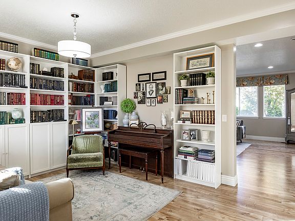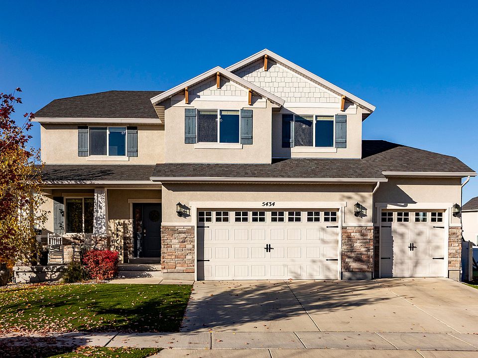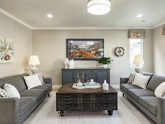 Beautifully Maintained Home in Herriman Towne Center! Welcome to this stunning and well-maintained home located in the heart of Herriman Towne Center, just minutes from shopping, schools, the library, and the rec center. This home offers the perfect blend of comfort, functionality, and charm. Step inside to find an open-concept main floor that's perfect for entertaining, featuring a spacious living room, dining area, and kitchen that flow seamlessly together. The kitchen showcases beautiful quartz countertops, offering both style and durability. A flex room at the front of the home provides endless possibilities-use it as an office, library, piano room, or formal sitting area. Upstairs, you'll find three bedrooms and a versatile loft, plus a convenient upstairs laundry room. The primary suite is spacious and inviting, complete with a luxurious ensuite bathroom featuring a custom soaking tub, separate shower, and beautiful tile finishes. The fully finished basement includes a large family room, an additional bedroom, and a full bathroom-ideal for guests or extra living space. It's also plumbed for a wet bar and includes an extra-large cold storage area, along with plenty of additional storage throughout the home. Enjoy the three-car garage with a built-in workbench-perfect for projects and extra parking. Outside, your backyard oasis awaits with a covered deck, mature landscaping, and artificial turf in both the front and backyards, keeping your lawn lush and green all year long with zero maintenance. Don't miss this opportunity to own a move-in-ready home in one of Herriman's most desirable communities!
