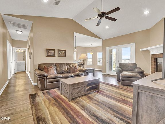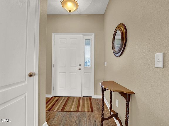 Welcome to this all brick home on a spacious lot with no HOA! There are many upgrades in this split bedroom floor plan to include stainless steel appliances, new vinyl plank flooring, crown molding, custom blinds, a built in desk and so much more. Enter into a beautiful foyer and find an immaculately kept home with bullnose corners throughout. The kitchen area includes a breakfast bar open to an inviting fireplace in the living area. The master bedroom has a beautiful tray ceiling and ensuite bathroom with 2 closets, double vanities , sinks and a separate shower and soaking tub. This Location is perfect -just a short drive to Tyndall Air Force Base, Downtown Panama City, St. Andrews, Pier Park and Sugar Sand Beaches!