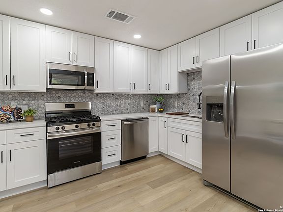 "Welcome home! This stunningly remodeled property blends style and comfort, making it the perfect place to feel at home. Fall in love with the gleaming quartz countertops, elegant marble backsplash, brand-new kitchen cabinetry, stainless appliances, and custom-tiled showers. This home has been designed to impress family and guests alike. The solarium, a versatile extra 200 sq. ft. space, is a true highlight offering the best of indoor-outdoor living year-round. Whether it becomes your home office, yoga studio, playroom, or relaxation nook, this bright, sun-filled room offers endless possibilities to fit your lifestyle. Nestled in a peaceful, family-friendly neighborhood, with quick access to highways 151, 90, and 410, this home is ideally located for an easy commute. Downtown and Lackland AFB are just minutes away, and local shops and conveniences are right around the corner, perfect for both work and play. Behind the scenes, this home is equipped with energy-efficient and maintenance reducing updates, including blown-in insulation and dual pane vinyl windows for year-round comfort and low utility bills, a brand-new roof for decades of worry-free living, and eight new piers providing lasting stability and peace of mind. Priced below market with it's luxurious upgrades, this move-in-ready beauty stands out in today's competitive market. Don't miss your chance to make it yours -- Step inside, feel the difference, and ring in the New Year in your new home!"